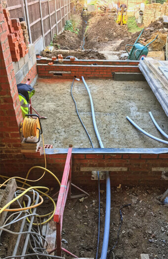 We perform compliant trenching and install electrical-grade conduit for underground mains cabling, including proper backfill, warning tape placement, compaction, and restoration of surfaces where needed.